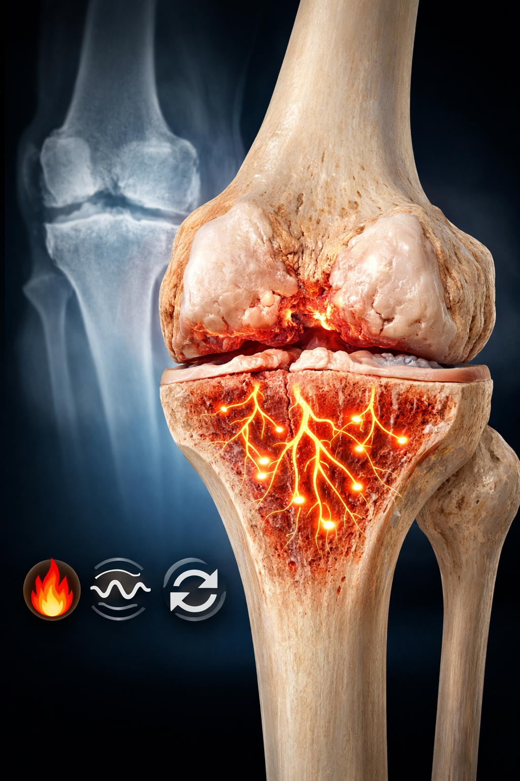 When knee cartilage wears down, the bone underneath hardens. That hardening irritates the nerves inside the joint — the real reason knee pain feels sharp, sudden, and unpredictable.