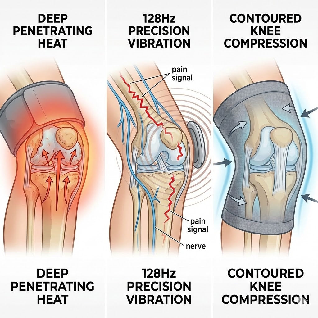 Together, heat, vibration, and compression help your knee feel safer, calmer, and more mobile — so relief actually lasts, not just fades minutes later.